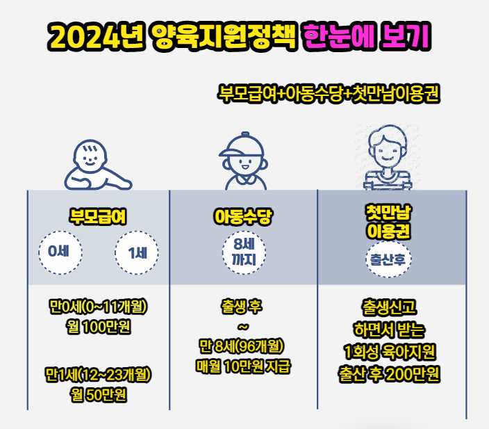 - 2024년부터 0세 100만 원, 1세 50만 원 부모급여 지급 근거 마련 -